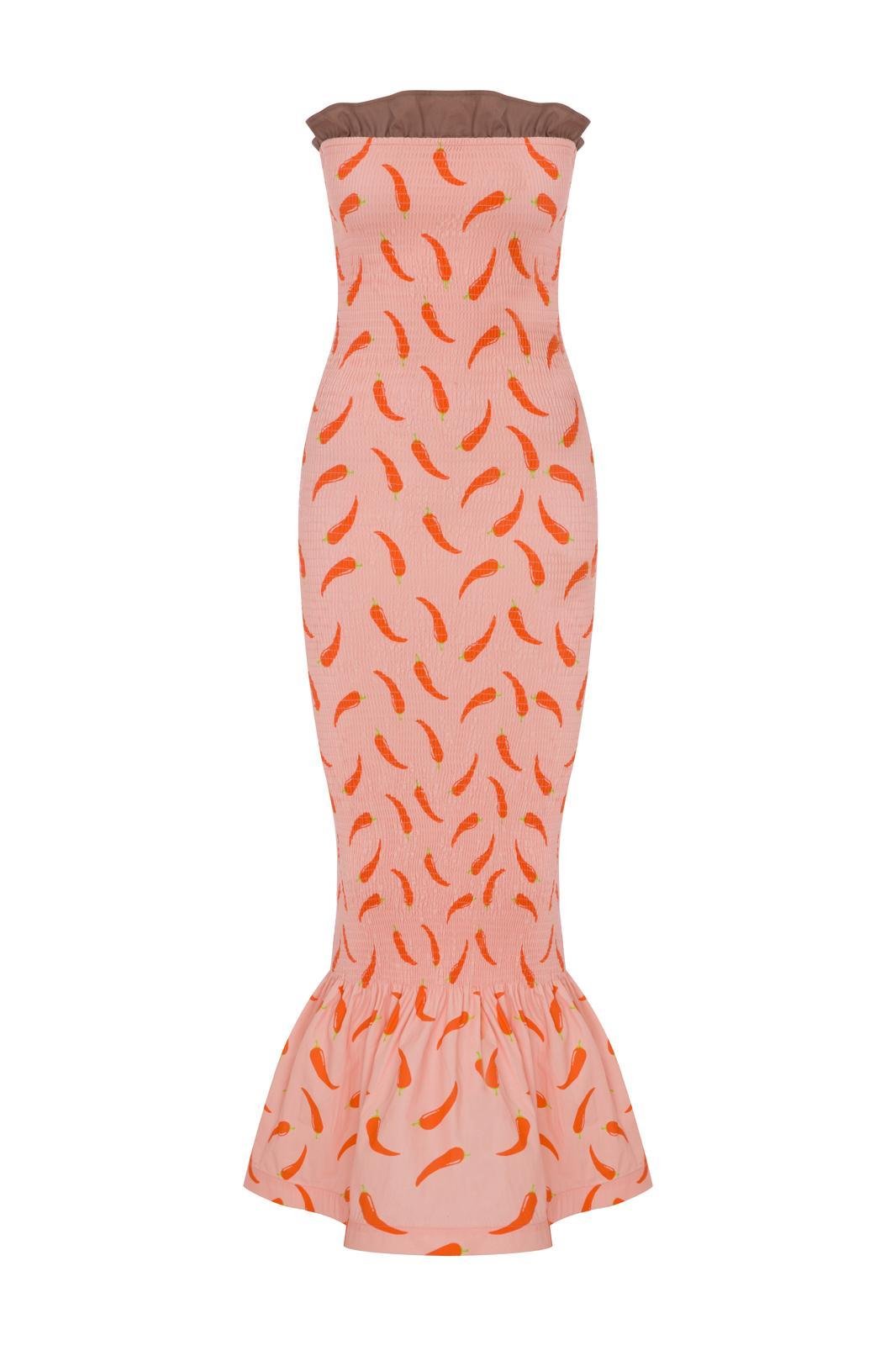- Strapless ruffle detailed midi dress